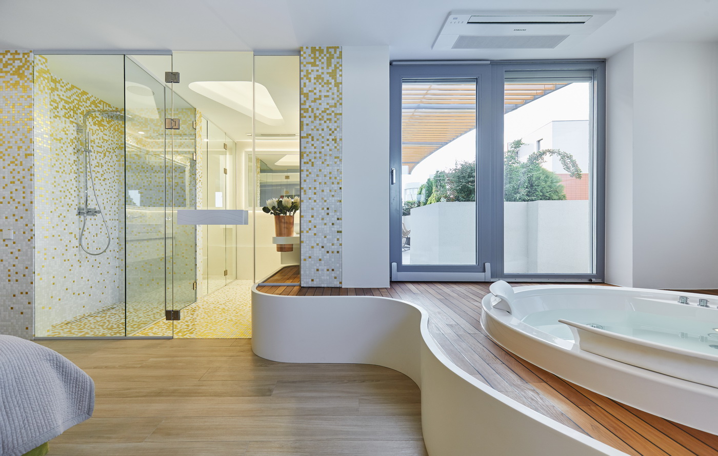 Avand destinatia de locuinta pentru un cuplu matur, apartamentul are trei puncte majore de interes.