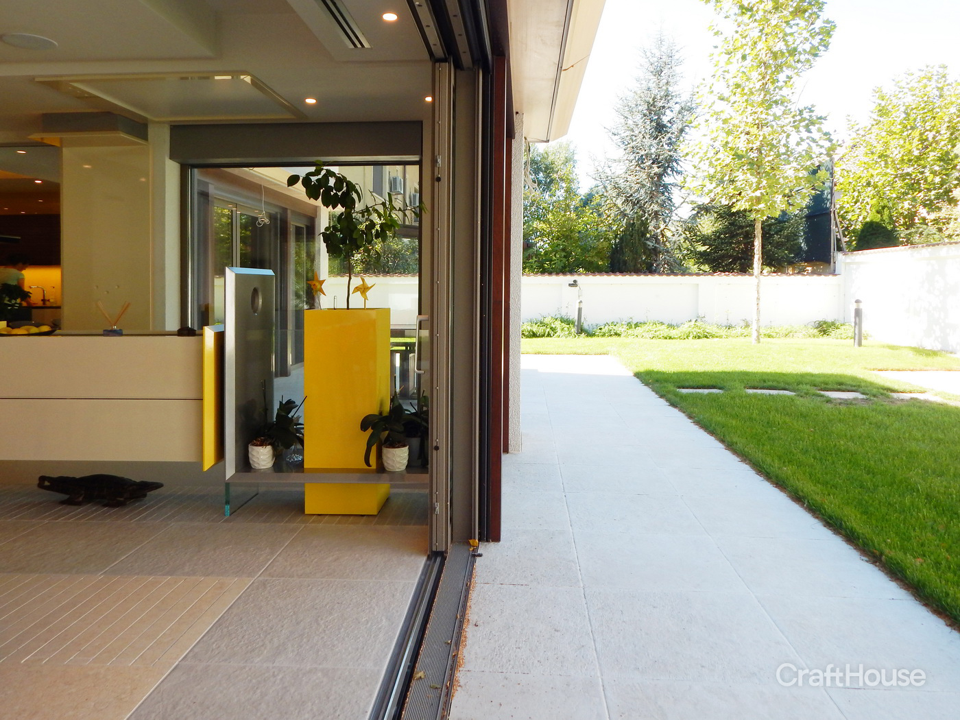 Noua structura subterana a devenit fundatia pentru extinderea parterului, pentru crearea unei zone de zi mai generoase si cu deschidere directa catre terasa. Pentru asigurarea aceluiasi nivel pentru pardoseala interioara si terasa exterioara, astfel incat circulatia sa nu fie impiedicata de nici un prag sau denivelare, s-a ridicat nivelul curtii din spate cu 50 de cm si s-a utilizat o tamplarie speciala, ingropata, pentru peretele vitrat al terasei.